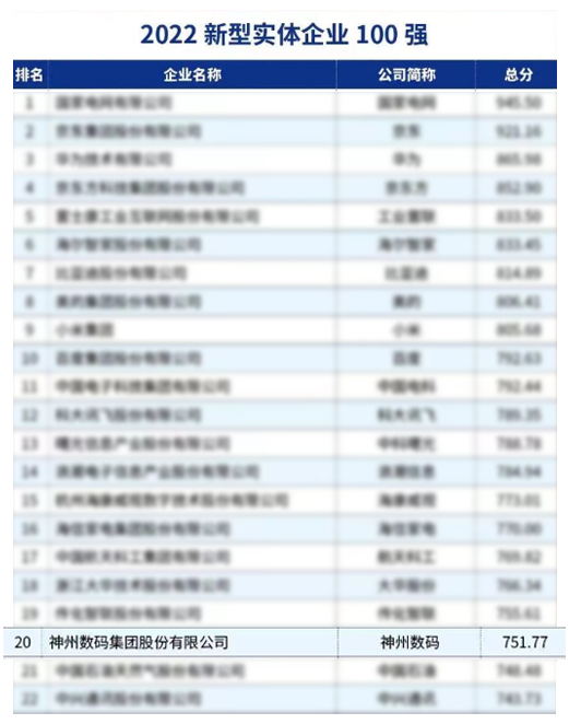 11月27日,中国企业评价协会在中国企业家博鳌论坛“中国式现代化下的新型实体企业发展之路”研讨会上重磅发布了“2022新型实体企业100强”榜单,无限娱乐数码(000034.SZ)凭借强劲数字化服务能力和赋能数字经济发展的丰富实践成功入选,位列榜单第20位、现代信息技术服务企业前列。